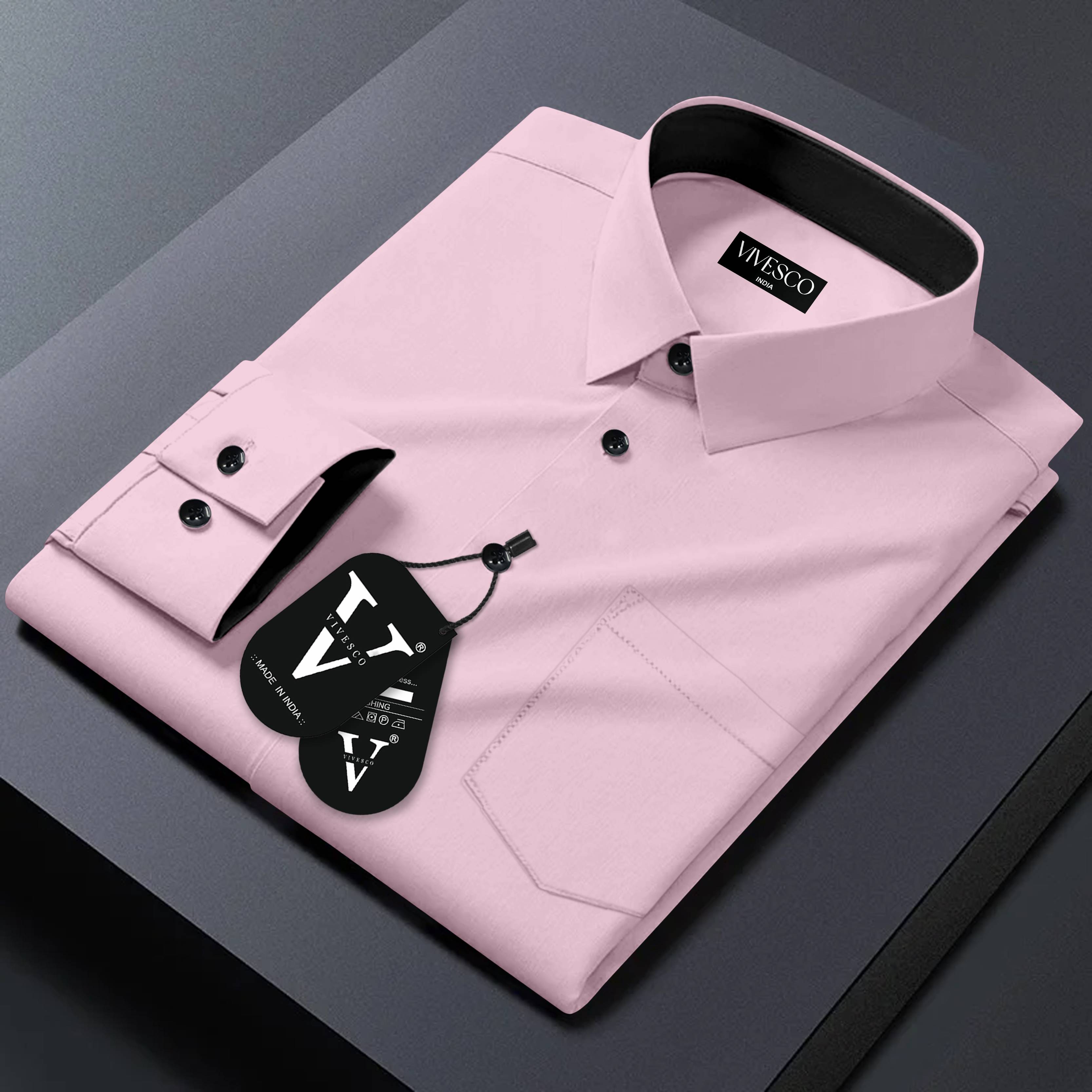 VIVESCO Men Solid Casual Pink Shirt