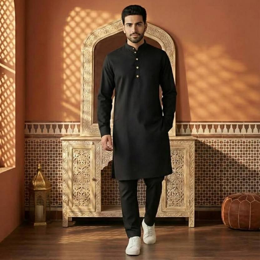 This men’s solid black kurta is designed for a classic ethnic look with everyday comfort. Crafted from smooth and lightweight fabric, it offers a breathable feel and a comfortable fit suitable for long hours of wear. The kurta features a mandarin collar with a clean button placket, giving it a refined traditional appearance.