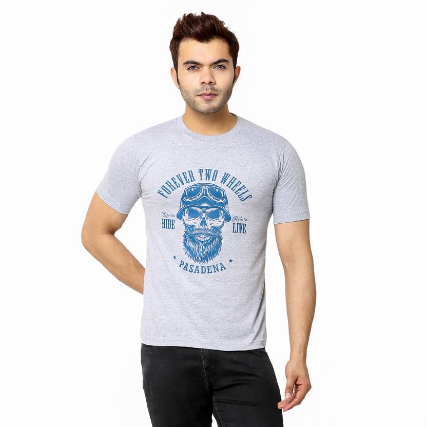 Men Printed, Typography Round Neck Cotton Blend Grey T-Shirt