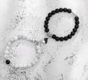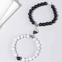 I Love You 2 Pcs Magnetic Valentines Day Broken Heart Love Couples Promise 2 in 1 Duo Wrist Band Cuff Elastic Field Therapy 8mm Howlite Black Beads Stone Moti Bracelets