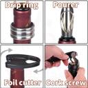 Includes 4 Essential Wine Tools: Set contains a stainless steel corkscrew, wine pourer, vacuum stopper, and foil cutter for a complete wine experience.