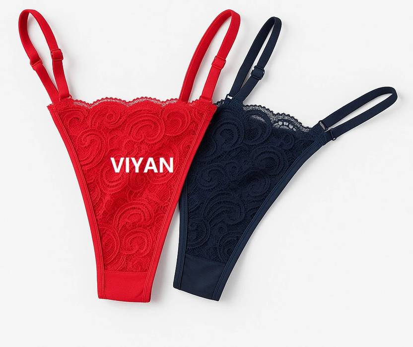VIYAN Women's Pack of 2 Lace Thong Panties - Red & Black