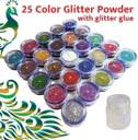 VIZO: Trendy Fashionable 25-Color Eyeshadow Glitter Powder Set with Cosmetic/Glitter Glue