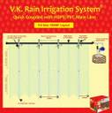V.K. Rain Pipe comes with ?Do It Yourself Kit?. No professional is required to install the kit. The kit contains all the parts required for rain irrigation for a given area. Rain pipe system is an affordable irrigation technology. It is a flexible pipe with a pattern of drip holes. It is easy to install and maintain. These drip holes are made with nano punching technology to ensure uniform flow of water. Rain pipe is suitable for closely spaced crops, onion, vegetable crops, leafy vegetables, groundnut etc. It spray water up-to 10 to 15 feet to each side.