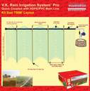 V.K. Rain Pipe PRO comes with ?Do It Yourself Kit?. No professional is required to install the kit. The kit contains all the parts required for rain irrigation for a given area. Rain pipe system is an affordable irrigation technology. It is a flexible pipe with a pattern of drip holes. It is easy to install and maintain. These drip holes are made with nano punching technology to ensure uniform flow of water. Rain pipe is suitable for closely spaced crops, onion, vegetable crops, leafy vegetables, groundnut etc. It spray water up-to 12 to 18 feet to each side.