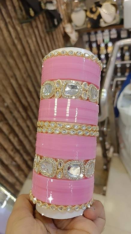 Fusion of Tradition and Modernity: These chudas retain the classic circular shape and stackable nature of traditional bangles while incorporating modern design elements like the crystal embellishments. This fusion makes them a versatile accessory for a wide range of outfits and occasions.