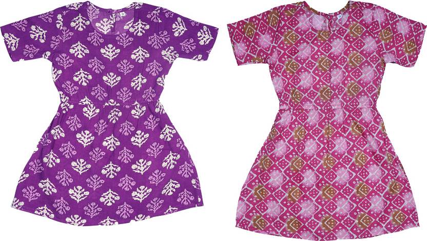 Trending Girl's Rayon Short Sleeve Round Neck Frock Dress Set of 2