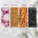 Boasting antifungal and antimicrobial properties, this shampoo ensures effective scalp cleansing. The infusion of onion and fenugreek helps eliminate impurities and excess oil, providing a refreshing and invigorating experience with each wash. With the added goodness of almonds, this formula helps maintain a healthy scalp, ensuring that your hair roots receive the nourishment they need. Almond's moisturising properties contribute to a luscious and hydrated feel, leaving your hair soft and manageable. Moreover, the inclusion of black seed amplifies the benefits by stimulating hair growth. So, you can get thick, full hair as black seed aids in strengthening hair follicles and reducing hair loss.