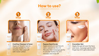 Courtesy of its comprehensive lineup, each step of this facial kit plays a crucial role in ensuring complete care for your skin. The comfrey cleanser cum toner effectively cleanses away impurities, preparing your skin for the subsequent steps. In addition, the papaya seed scrub provides a thorough exfoliation, leaving your skin with a refined texture. Following this, the cucumber gel imparts a cooling sensation, treating rashes and adding a refreshing touch to your skin care routine.