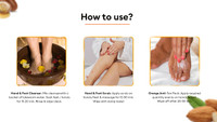 First, apply the hand and foot cleaner, which is specially designed to get rid of deeply rooted pollutants. Myrrh cuticle oil, which provides the skin with essential nutrients and a silky smooth texture, should be applied after that. Apply the hand and foot scrub next to get rid of dry and dead skin. To ensure deep nourishment, rub your skin with the hand and foot cream after that. Apply the anti-tan pack at the end to brighten the tanned skin.