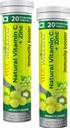 Natural Vitamin C + Zinc effervescent tablets (Pack of 2) 20 tablets each