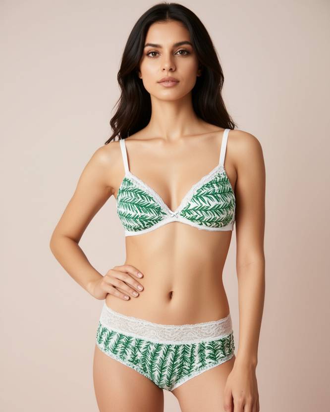 Experience the perfect mix of comfort and elegance with VLOURA’s Padded Polycotton Lingerie Set. Designed for women who love effortless style, this set features a lightly padded, wire-free bra paired with a matching mid-rise panty. The soothing green leaf print with lace detailing enhances its feminine appeal, making it a must-have for your intimate wardrobe.