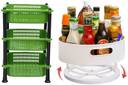VM BOND Fruits/Vegetables Kitchen Rack Plastic Combo Set 360° Rotating Tray Plastic Big Basket Vegetables Kitchen Rack