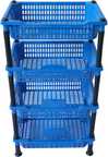 VM BOND Kitchen Rack 4 Layer Multipurpose Shelf Stand Basket Rack Plastic Fruit & Vegetable Basket (Blue)