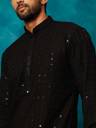 Men Embellished Cotton Rayon A-line Kurta (Black)
