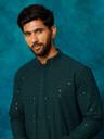 Men Embellished Cotton Rayon A-line Kurta (Green)