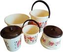 Product Material :High Quality Unbreakable Plastic Product Type :11 pcs Bathroom Set Package Contents:1 Bucket (25 Ltr), 1 Bucket (5 Ltr), 1 Patla, 1 Deep Tub, 1 Dustbin, 1 Mug (1.5 Ltr), 1 Mug (1 Ltr), 1 Soapcase, 1 Dustpan, 1 small dustbin Product Description: MATERIAL : Made of Virgin Plastic, 100% Safe & food Grade Material. Unbreakable Lightweight, flexible use, convenient and smart slide design, space saving and easy to store, durable. Optimum Quality: Heavy Weight Sleek, Stylish, Trendy and Innovative Bathroom Set Made of Virgin Plastic, Good Quality Plastic Material Attractive floral design and colour, easy to carry and use. The designed pieces from our collection up the style quotient of your bathroom.