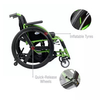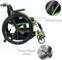 Thanks to its inflatable tires and quick-release wheels, this wheelchair effortlessly adapts to various terrains, ensuring a versatile and adaptable mobility solution.