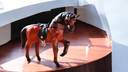 VMSK HandiCraft Shivaji Horse | Leather | 6” Inch | Brown | Premium Decorative Showpiece - 23 cm (Leather, Iron, Wood, Brown)