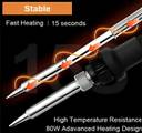 Built with 80W high power, the soldering iron heats up quickly, saving you time and ensuring faster, more stable operation. The pointed tip design provides enhanced precision, allowing you to solder fine connections and intricate components effortlessly. The temperature control system ensures consistent heat output, reducing the risk of damage to sensitive electronic parts.