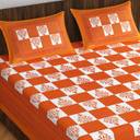 VNV Creation Cotton Double Flat 144 TC Jaipuri Prints Bedsheet (Pack of 1, White, Orange)