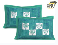 VNV Creation Cotton Double Flat 144 TC Jaipuri Prints Bedsheet (Pack of 1, White, Sea Green)