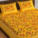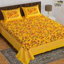 VNV Creation Cotton Double Flat 144 TC Jaipuri Prints Bedsheet (Pack of 1, Yellow)