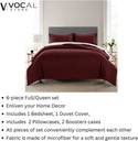 Vocal Store Satin Queen Sized Bedding Set (Maroon, Includes 1 Bedsheet, 1 Duvet Cover, 2 Pillowcases, 2 Boosters cases))
