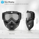 Features: Detachable goggles,Filtration of breathing holes, dust, sand, maximize keep breathing smoothly. With holes on both sides to ensure that the internal air circulation. Sculpted styling with exceptional fit and peripheral vision. Wide comfort bands fits goggle grip on helmets, holds goggle securely in place. Adjustable Strap to fit any helmet. Optically correct chrome colorful lens which is durable and shatter-proof . Foam padding around the outer rim for added comfort. Light weight ,Removable mask,Windproof. Material: Frame TPU, Face PE+PC,silicone antiskid stripe, Double foam. Size:One size fit most