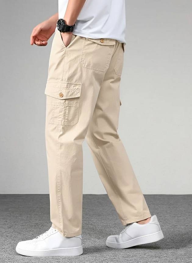 Vogaan Casual Solid Men's Regular Fit Drawstring Cargo Pants with Multiple Pockets