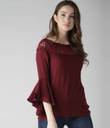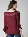 Vogue Nation Casual Flutter Sleeve Solid, Self Design Women Maroon Top