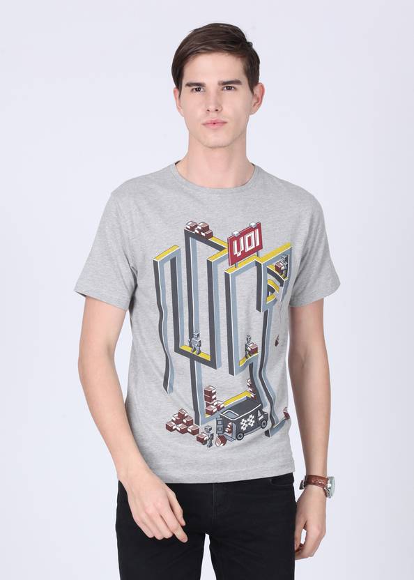 Men Printed Round Neck Cotton Blend Grey T-Shirt