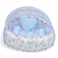 VoiDrop Cotton Baby Bed Sized Bedding Set (Grey, 1 Cotton Baby Bed with Mosquito Net, 1 Baby Head Pillow)