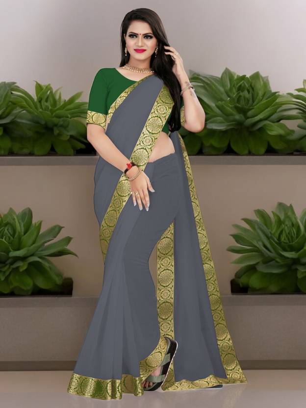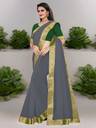 Volmina Solid/Plain Chanderi Cotton Blend Saree (Grey)