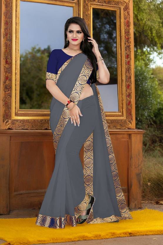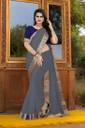 Volmina Solid/Plain Chanderi Cotton Blend Saree (Grey)