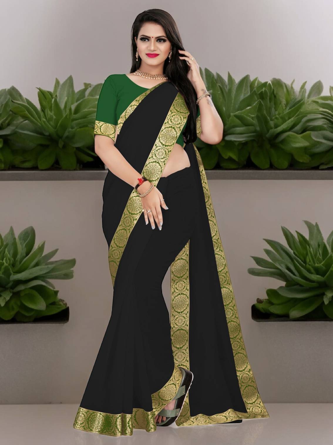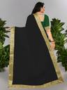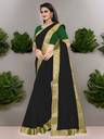Volmina Solid/Plain Chanderi Cotton Blend Saree (Black)