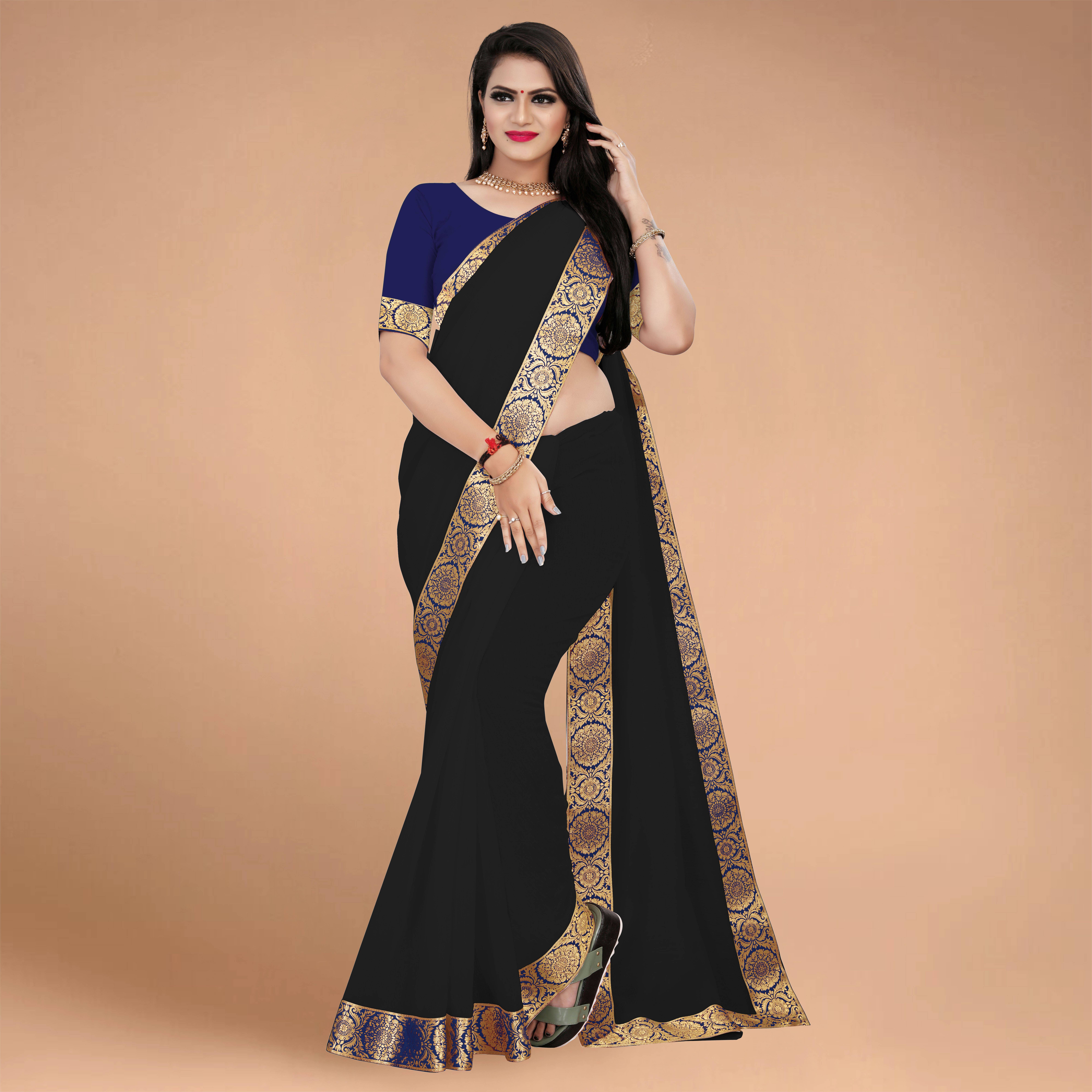 Volmina Solid/Plain, Woven Chanderi Cotton Blend Saree (Black)