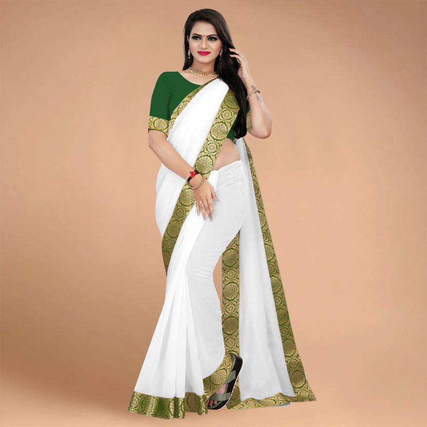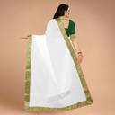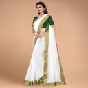 Volmina Solid/Plain, Woven Chanderi Cotton Blend Saree (White)