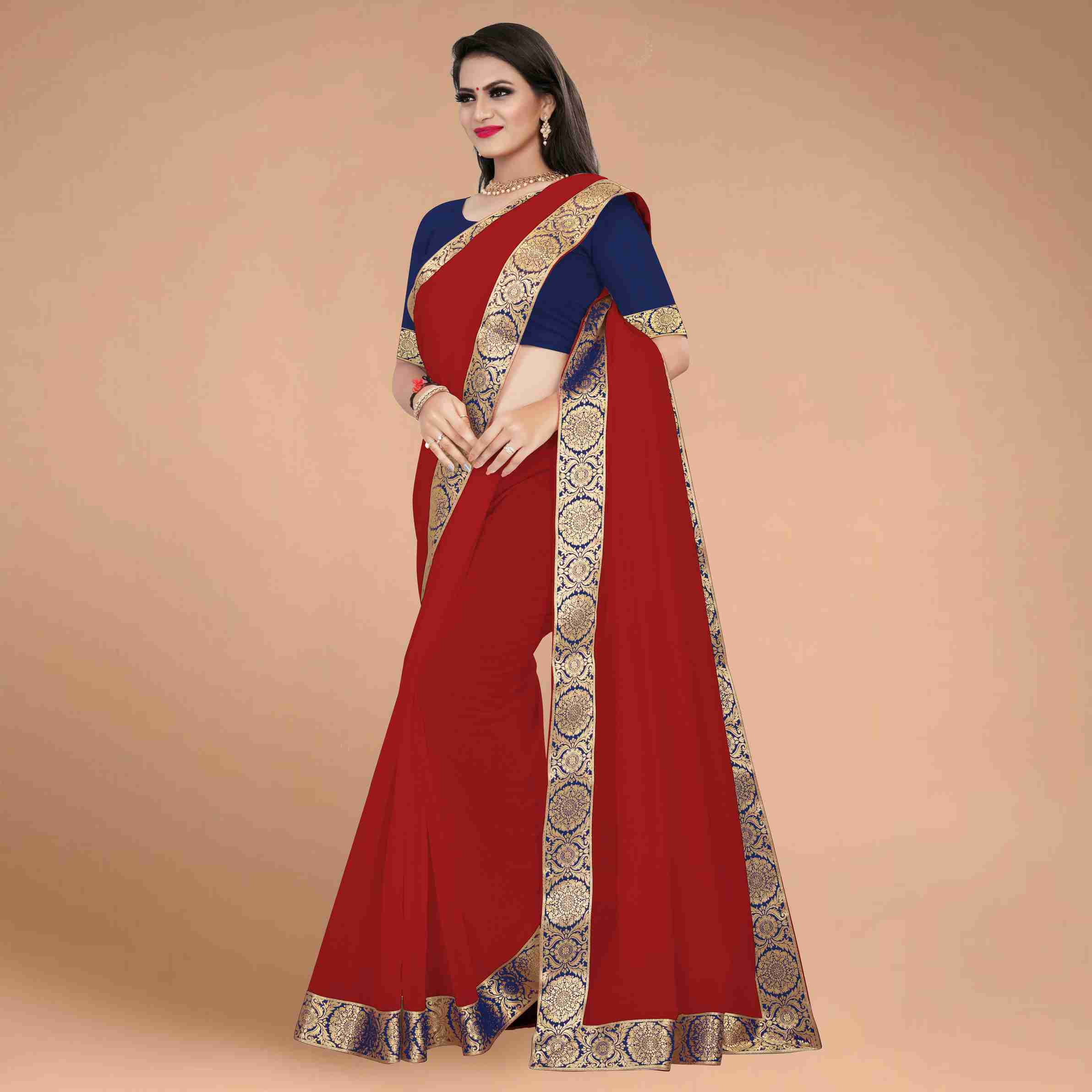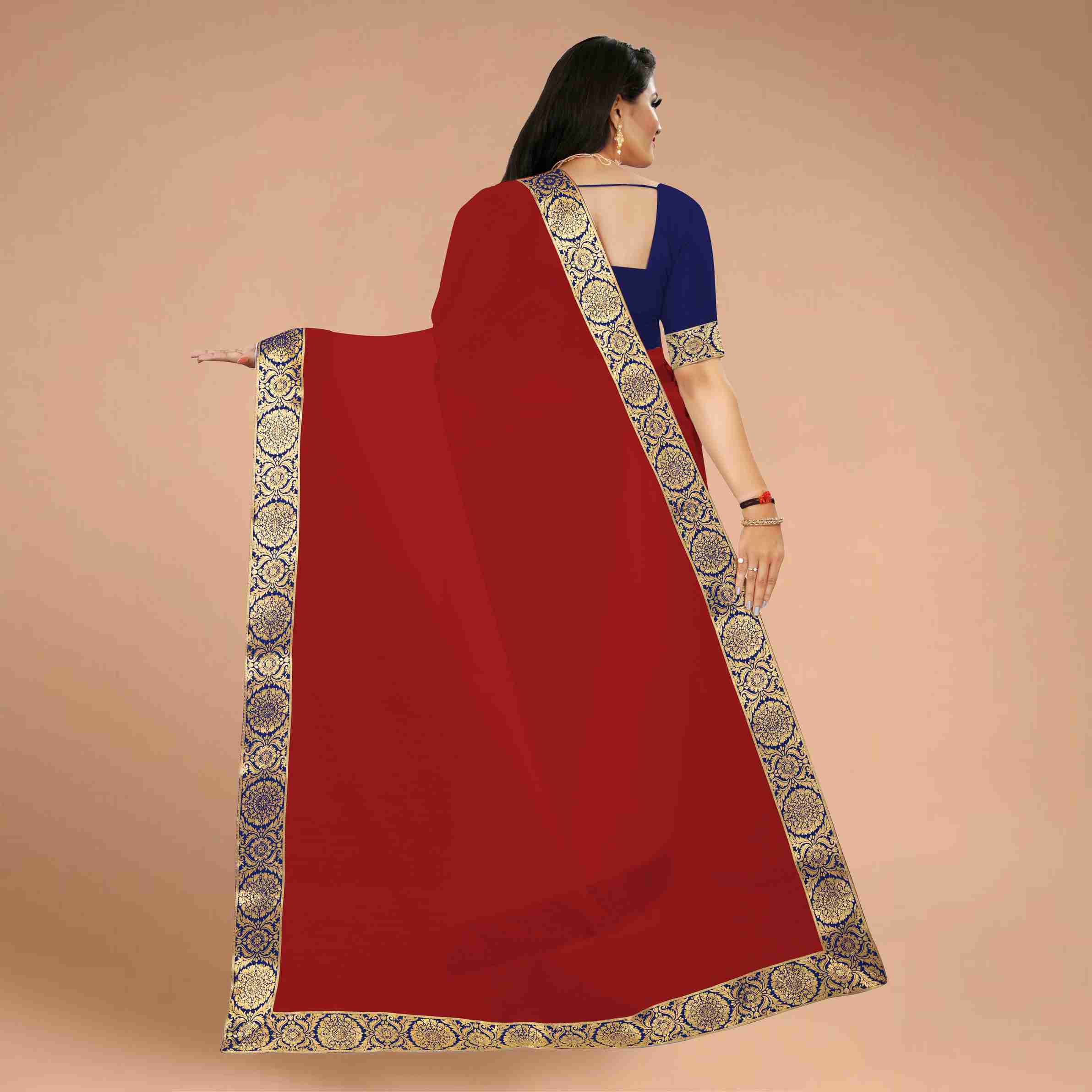 Solid/Plain, Woven Chanderi Cotton Blend Saree (Red)