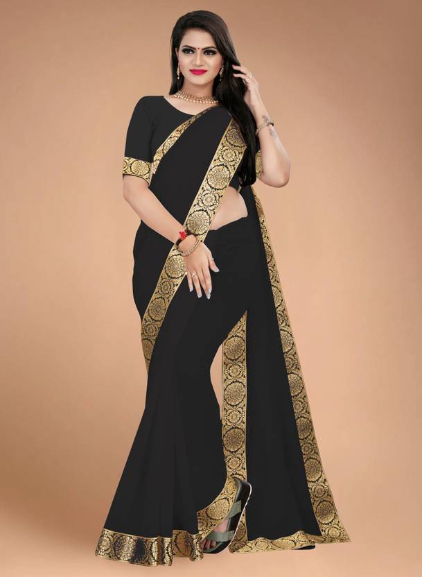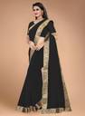 Volmina Solid/Plain, Woven Chanderi Cotton Blend Saree (Black)