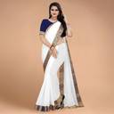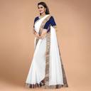 Volmina Solid/Plain, Woven Chanderi Cotton Blend Saree (White)