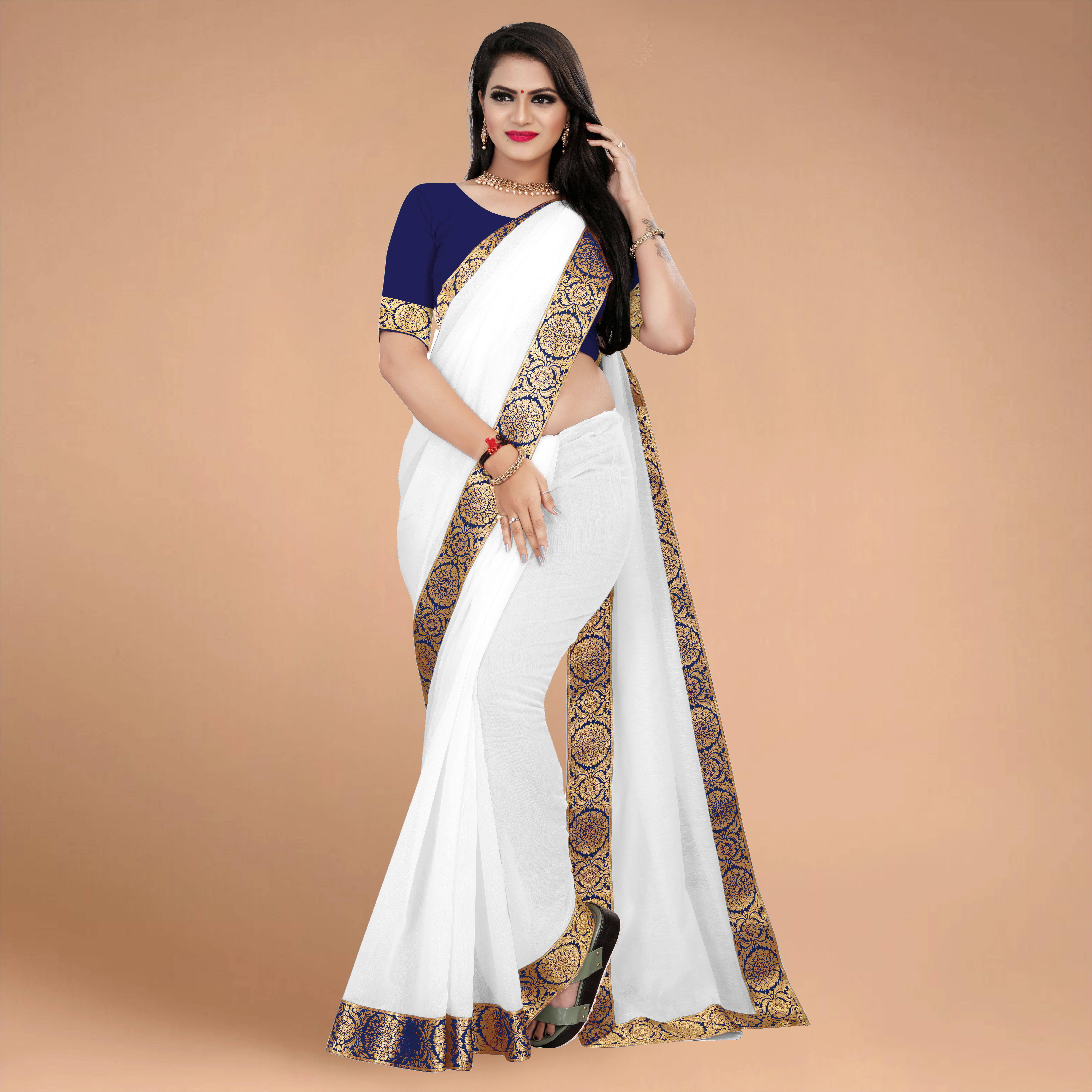 Solid saree with contrast border