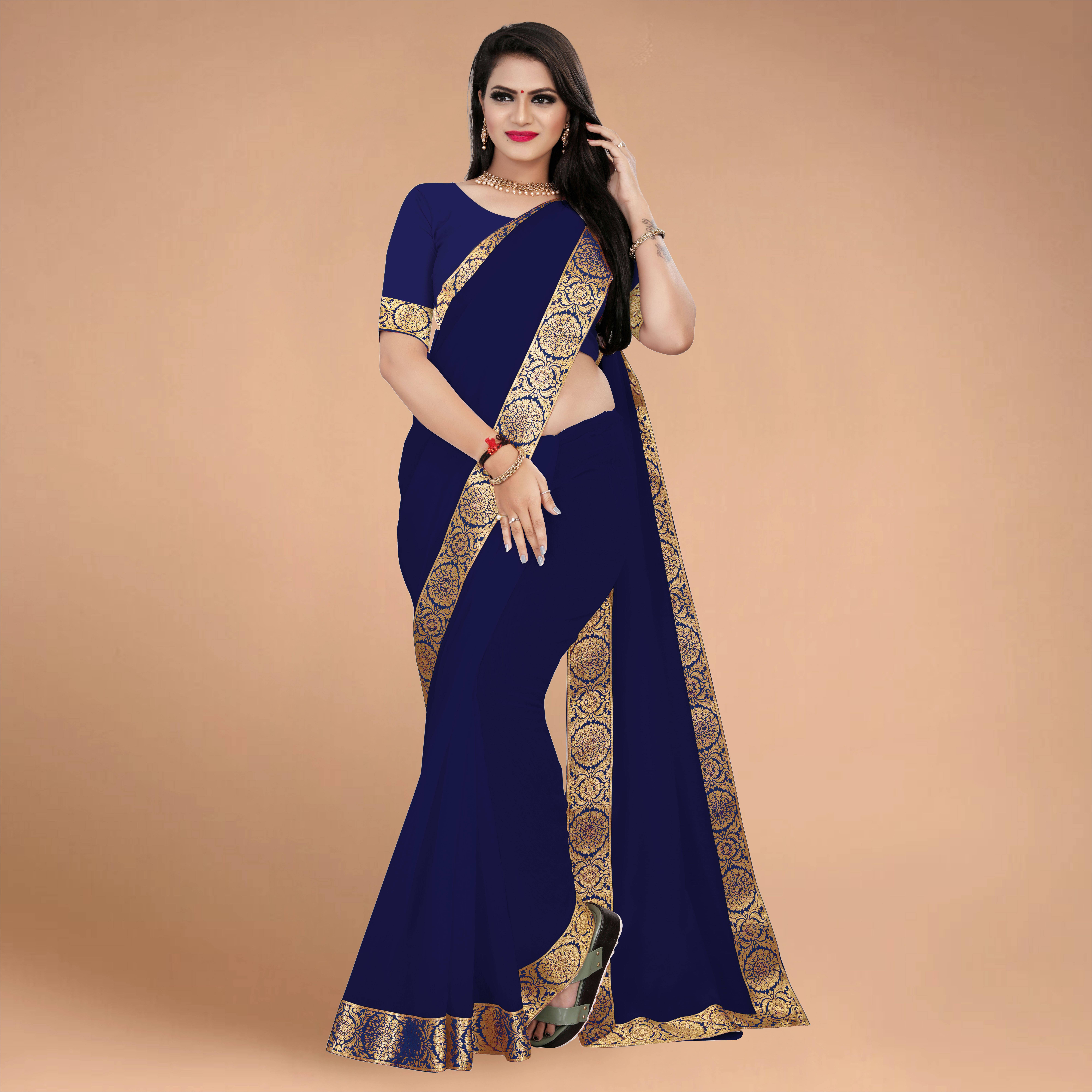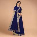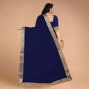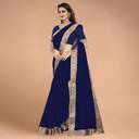 Volmina Solid/Plain, Woven Chanderi Cotton Blend Saree (Dark Blue)