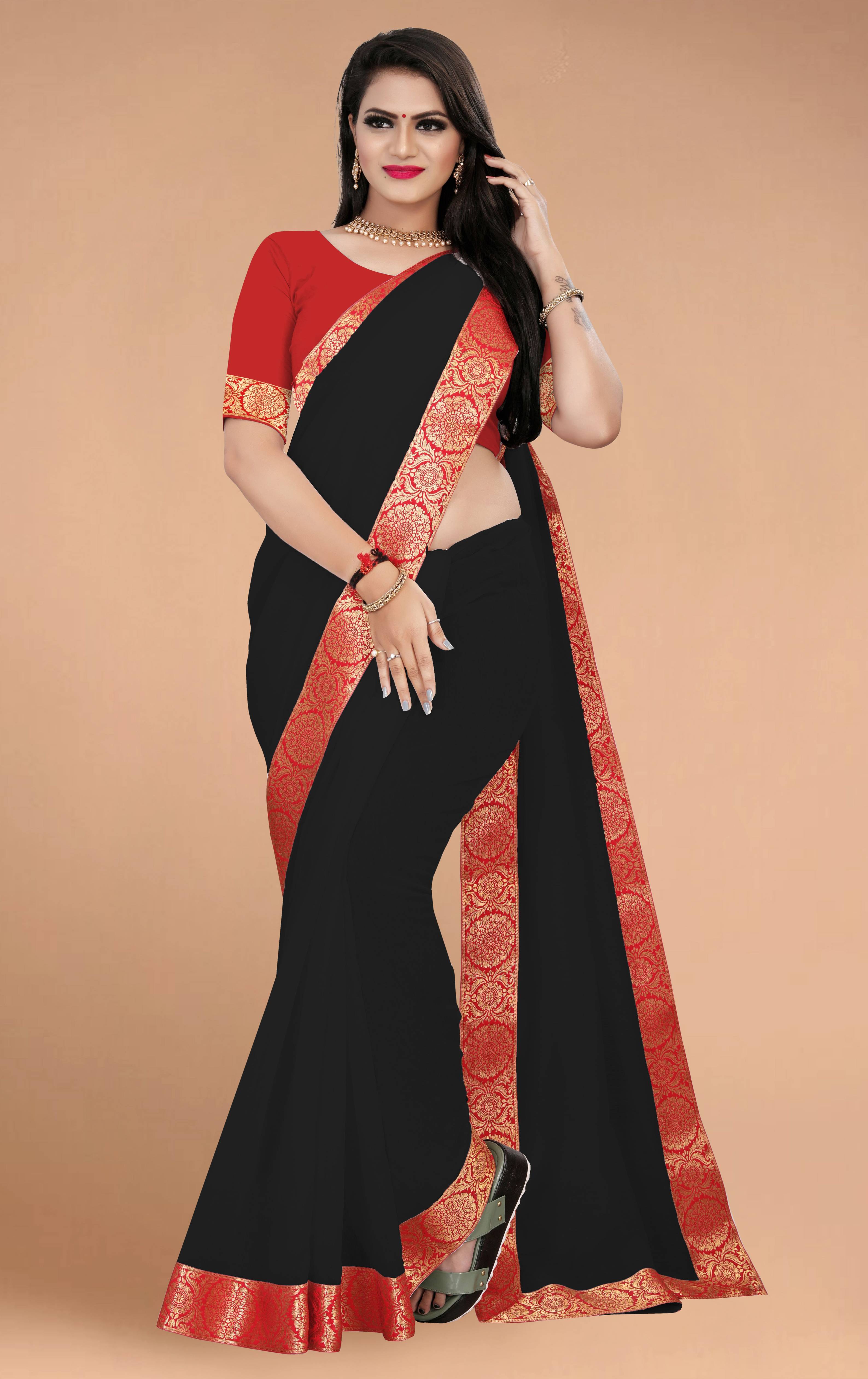 Solid saree with contrast border
