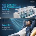 Fitted with an anti-dust filter that traps minute dust particles during airflow, keeping the indoor air clean and dust-free, the anti-microbial coating inhibits the growth of mould and mildew inside the unit, making it safer even for longer use.