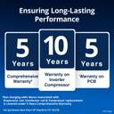 Featuring stabiliser-free operation, this AC delivers seamless functionality, unaffected by voltage fluctuations. Moreover, its wide operating range eliminates the need for an external stabiliser, thereby ensuring consistent performance.