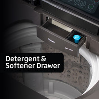 A separate drawer included in the design of this washing machine helps to effectively dispense the detergent and softener.