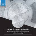 This washing machine comes with a PureStream Pulsator wash method that uses water streams and pulsating actions to deliver thorough and gentle cleaning.