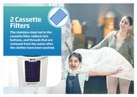 Sporting a stainless steel net in its cassette filter, this washing machine captures lint, buttons, and threads that come apart during the wash cycle after the laundry is washed.