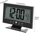 | Other Functions | - Brand new and high quality multi functional electric clock with alarm and snooze function, Sound sensor light up function, Large LCD display will simultaneous display of date, time and week, and time can be shifted between 12:00 and 24:00, Real time display the temperature. °C and °F change freely for easy reading, Easy to use and place on the table or desk with the support bracket